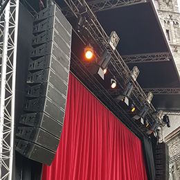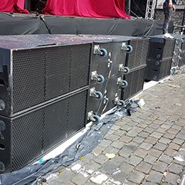 The dispersion, sound quality and power out of a box with this small footprint were the main reasons Dirk Brysbaert, sound manager for the Sint-Jacobs stage, choose for the Turbosound Flex Array. Dirk is a long time Turbosound friend and lover, going back to the TMS, Floodlight and Flashlight days.